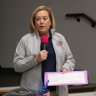 At the Council's Monthly Social, Tom presented Candace Mabry, the daughter of a deceased World War II veteran with a check for $6,000, which included the funds necessary to send a member of Assembly 3154 to Washington D.C. as a Guardian for one of our local war veterans on an upcoming Honor Flight.